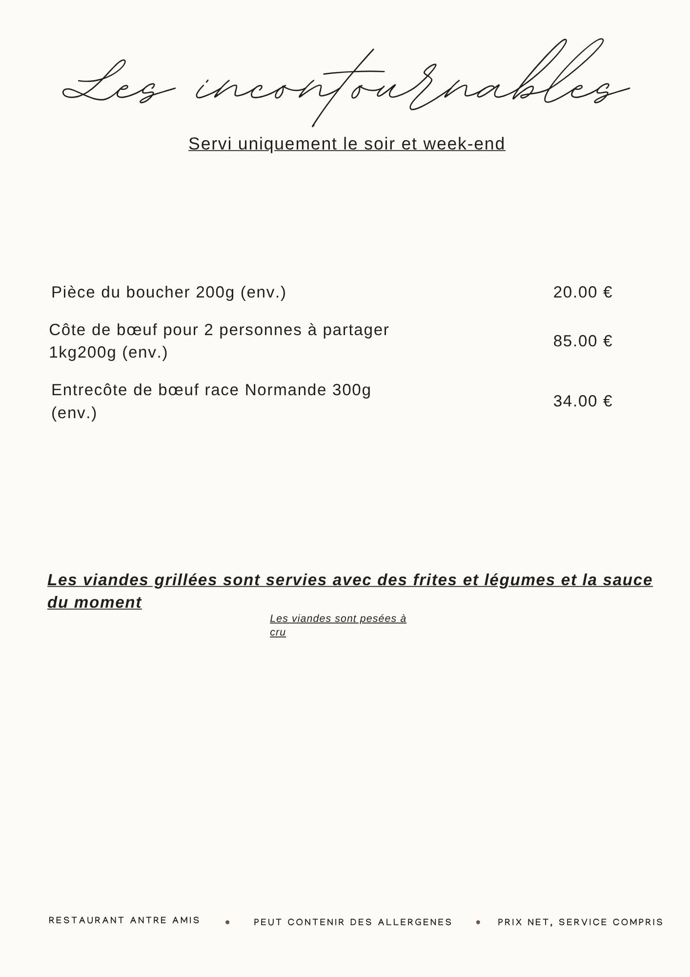 Bienvenue dans l’Antre des amis : Restaurant bistronomique à l'ambiance feutrée et décontractée. Une cuisine de cœur et de passion avec des produits locaux et de saison. Si vous êtes amateurs de bonnes viandes et de convivialité c'est ici qu'il faut être !